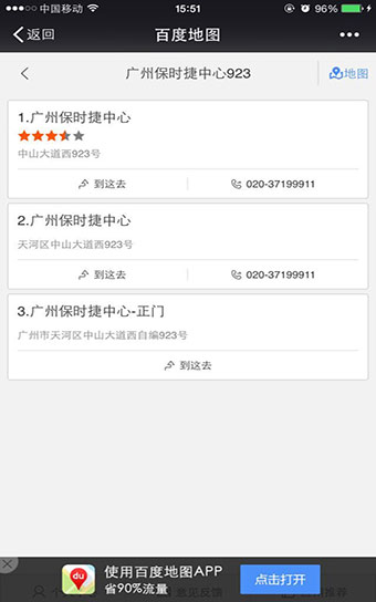 充分應(yīng)用手機的特性,配合百度地圖,可以讓客戶一鍵導(dǎo)航至公司。